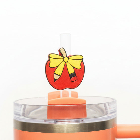 Teachers Apple With Pencil • Stanley Straw Buddies – 3D Printed Straw Toppers (Fits Stanley Size Straws Only)